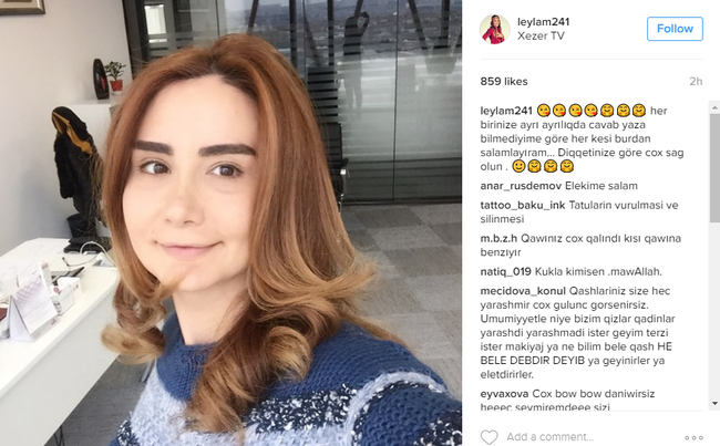 Onlar Leylanın fotosuna "Qaşınız çox qalındır, kişi qaşına oxşayır", "Kukla kimisən", "Qaşlarınız sizə heç yaraşmır" "Qaşınızı dəb xatirinə yaraşmasa belə bilə-bilə belə edirsiniz" və s. kimi şərhlər yazıb.