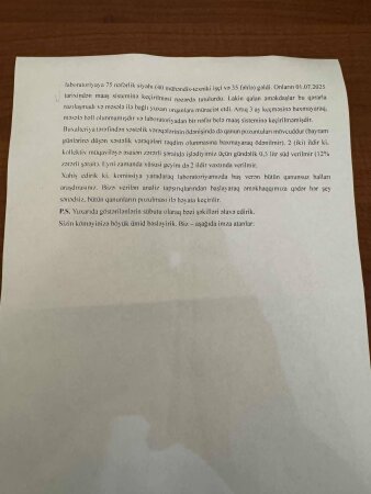 -İki laboratoriya birləşdirilərək (nəzarət və əmtəə) karbohidrogen laboratoriyası yaradıldı. Bizə həm əvvəlki, həm də yeni laboratoriyanın analizlərini aparmaq tapşırıldı.  Lakin bizimlə bağlanmış Əmək Müqaviləsində (06.01.2025 tarixində SİMA tədbiqi vasitəsilə elektron formada yenilənmiş) heç bir dəyişiklik olmadı. Və bizi Əmək Müqaviləmizdə qeyd olunmayan işləri görməyə məcbur etdilər.