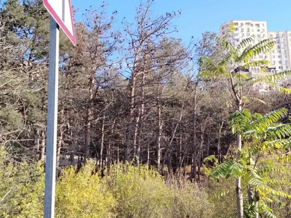 Aşağıdakı fotolardan da aydın görünür ki, artıq yüzlərlə ağac zavala gəlib və qurumuş vəziyyətdədir.