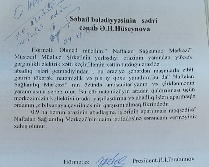 Qeyd edək ki, Dövlət Yol Polisi İdarəsinin tikinti apardığı ərazinin gələcək aqibəti hüquqi müstəvidə öz həllini tapmalı olacaq. Artıq Naftalan Sağlamlıq Mərkəzi məhkəməyə müraciət edib. İyun ayının 21-də Bakı İqtisad Məhkəməsində Hikmət İbrahimovun iddiasına baxılacaq.