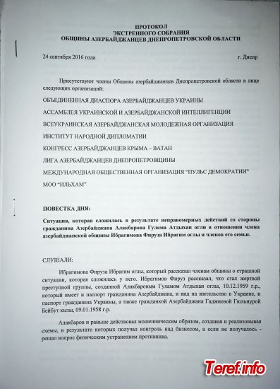 DİA.AZ teref.info-ya istinadən Dneprepetrovsk şəhərində keçirilən yığıncağın və bu yığıncaqda müzakirə olunan məsələlərin sənədlərini sizə təqdim edir: