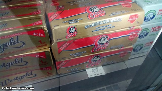 Bazarda isə müxtəlif çeşid kərə yağları satışdadır. Rusiya, Belorus istehsalı olduğu deyilən bu yağların qiyməti çox ucuzdur.