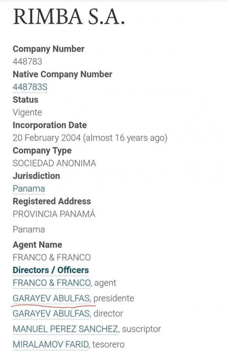 Deputatlığa namizəd deputat Hüseynbala Mirələmov və mədəniyyət naziri Əbülfəz Qarayevin Panamada fəaliyyət göstərən RİMBA S.A. şirkətinin Azərbaycanda filialı da var.