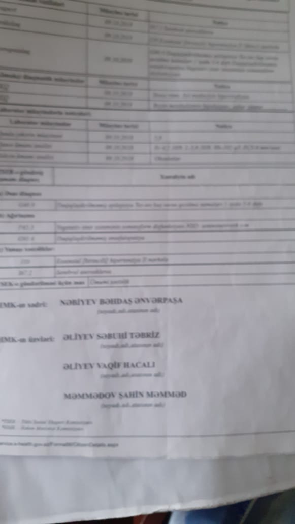 “Atam – Xızı rayon sakini, 05.10.1958-ci il təvəllüdlü Qeno Əli oğlu Quliyevin əlillik vəziyyəti 21.02.2019-cu ildə səhiyyə müəssisəsinin 0331003AABKU nömrəli göndərişi ilə təsdiq olunub. Lakin 24.01.2020-ci ildə nəzarət qaydasında əyani müayinə adı altında (bu, formallıq daşıyır, çünki heç bir tibbi tədbir görülməyib) sadəcə ad-soyad soruşulmaqla əlil olmaması barədə rəy verilib”.
