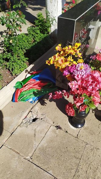 “Dəfələrlə bu kimi hallarla qarşılaşmışıq. Bu gün səhər də oxşar mənzərənin şahidi olduq. Dirəklər yerindən çıxarılıb, bu zaman şəhidlərimizin qəbirləri də zədələnib, bayraqlar isə yerə atılıb. Polisə müraciət etmişik”.
