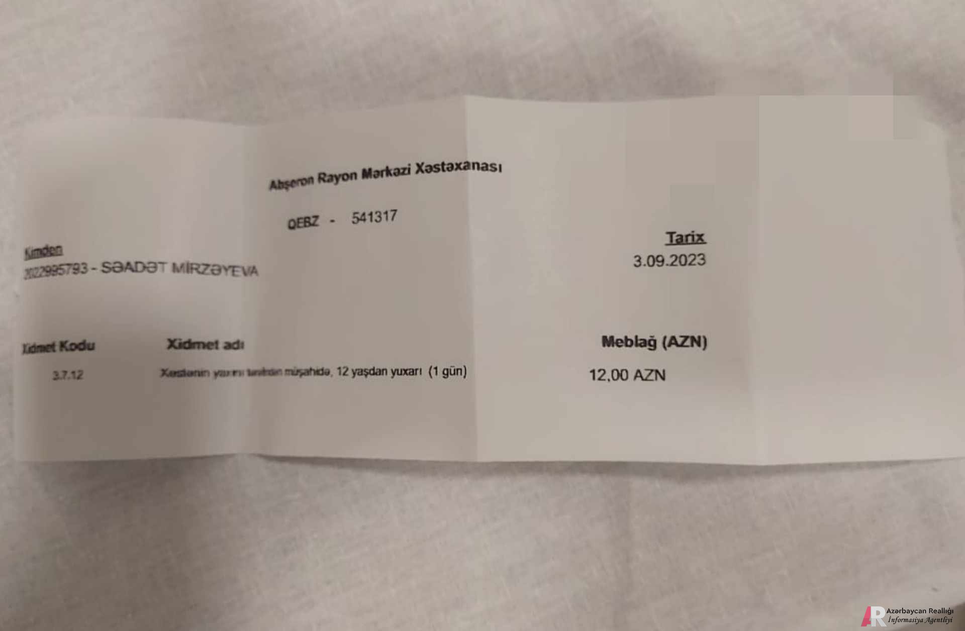 Ödəniş olunduğdan sonra hələ üstəlik ona peçaq və imzası olmayan çek də təqdim ediblər. İnsanlar sanki dövlət xəstəxanasında yox hansısa otel və ya hosteldə gecələmiş kimi rəftar edirlər.