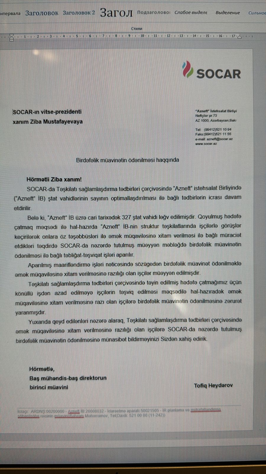 Əslində isə aydın olur ki, SOCAR strukturlarında ciddi ixtisarlar həyata keçirilir və bu prosesin sükutla yola verilməsi üçün "MAAŞLARINIZ ARTACAQ" kimi yalançı saxta vədlər ortaya atıb çaşqınlıq yaradırlar.