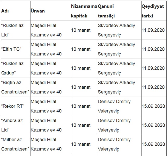 Onu da bildirək ki, 328 saylı hərbi hissə son 2 ayda daha 3 tender müsabiqəsi keçirib. Bu tenderlərdə diqqət çəkən məqam odur ki, bütün tederlərdə qalib olan şirkətlər bir-iki ay əvvəl yaranan şirkətlər olub. 189 min 800 manatlıq tenderin qalibi – “Aysom az Ltd” MMC 29.07.2020-ci il tarixində, 187 min 605 manatlıq tenderin qalibi – “Sarmerdi” MMC 13.08.2020-ci il tarixində, 188 min 548 manatlıq tenderin qalibi – “Mardon Servis” MMC isə 10.08.2020-ci il tarixində dövlət qeydiyyaına alınıblar. Diqqət çəkən məqamlardan biri də, “Ruklon Az Ltd” MMC-nin qanuni təmsilçisi Skvortsov Arkadiy Sergeyeviçin “Aysom az Ltd” MMC-nin qeydiyyatda olduğu - “Sabunçu rayonu, Zabrat ŞTQ, 2-ci Zabrat dairəsi ev. 133, m. 72” ünvanda da başqa bir şirkəti qeydiyyatdan keçirməsidir. 08.09.2020-ci il tarixində Skvortsov Arkadiy Sergeyeviç “2-ci Zabrat dairəsi ev.133 m.72” ünvanında “Okean az Grup” adlı şirkəti qeydiyyatdan keçirib. Qeyd olunan ünvanda qeydiyyatdan keçən şirkətlərin siyahısı ilə BURDAN (https://www.yeniavaz.com/az/news/153950/sirli-unvandaki-sirketler-uze-cixmaga-basladi-ilk-sirket-75-min-manat-uddu-fotofakt) tanış ola bilərsiniz. Bundan başqa 328 saylı hərbi hissənin keçirdiyi tenderlərin qalibi olan “Sarmerdi” MMC və “Mardon Servis” MMC-nin hər ikisi eyni hüquqi ünvanda – “Nərimanov rayonu, Fətəlixan Xoyski pr., ev 138A, m. 52” dövlət qeydiyyatına alınıb. “Mardon Servis” MMC-nin qanuni təmsilçisi Şotayeva Həqiqət Əliheydər qızı eyni ünvanda, eyni tarixdə (10.08.2020) daha bir şirkəti (Milani 2020” MMC) qeydiyyatdan keçirib. Məlumat üçün bildirək ki, "Dövlət satınalmaları haqqında" Qanunun 6-cı maddəsində malgöndərənlərin (podratçıların) ixtisasına dair tələblər yer alıb. Həmin maddənin 6.2.1-ci bəndində açıq şəkildə yazılır ki, satınalma müqaviləsinin icrasını təmin etmək üçün müvafiq sahədə peşəkarlığının, təcrübəsinin, texniki və maliyyə imkanlarının, işçi qüvvəsinin, idarəetmə səriştəsinin, etibarlığının olması lazımdır. Cəmi ay yarım əvvəl yaranan, nəinki rəsmi veb-səhifəyə, hətta sosial şəbəkə hesabına sahib olmayan bir şirkətin hansı peşəkarlığa və təcrübəyə sahib olacağı aydın deyil.