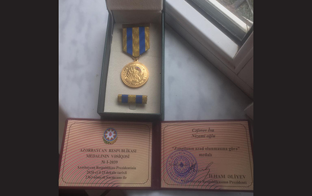 İ. Cəfərov qeyd edib ki, ötən ilin oktyabrında Zəngilan döyüşlərində sağ əlindən qumbara partlaması nəticəsində qəlpə yarası alıb: “4 ay Dövlət Sərhəd Xidmətinin hərbi hospitalında yatmışam. “Zəngilanın azad edilməsi uğrunda” medalı ilə təltif edilmişəm”.