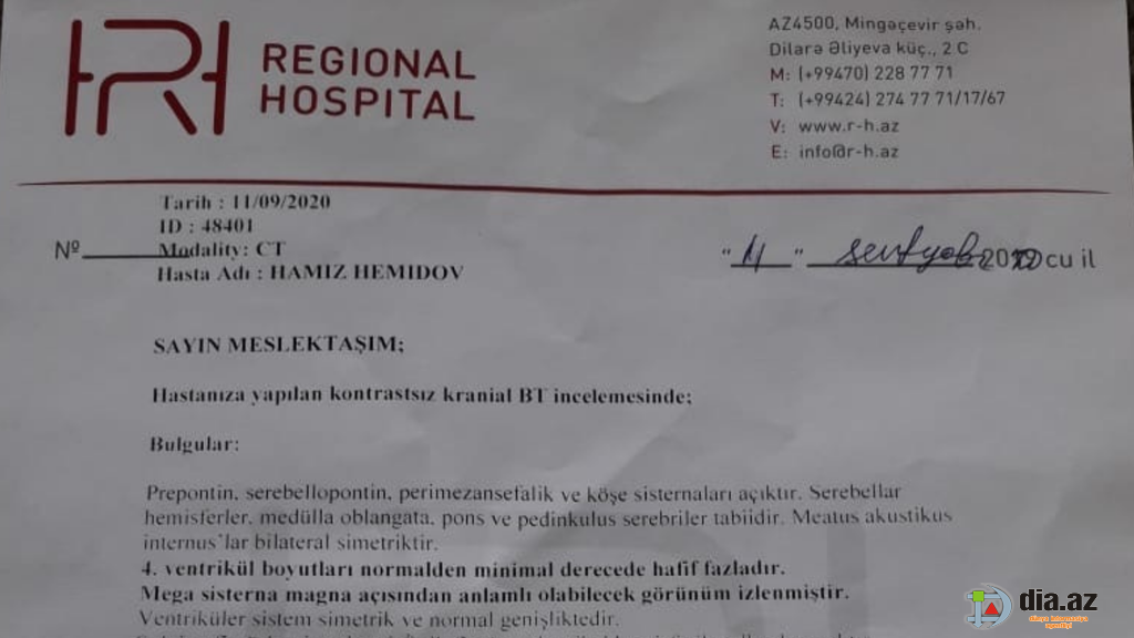Göyçayın Şəkili kəndində yaşayan Həmidovlar ailəsi payız başlayandan əziyyət çəkir. Ailənin kiçiyi Hamiz Həmidovun səhhətində ciddi problem yaranıb. DİA.AZ xəbər verir ki, ata Rəşad Həmidov oğlunun vəziyyəti ilə bağlı emosiyasız danışa bilmir. Söhbətin bir neçə yerində ağlayır, fasilə vermək lazım gəlir. Atanın dediyinə görə, Hamizin beyinlə bağlı problemi ortaya çıxıb. Bizə təqdim etdiyi xəstəxana sənədlərində dəqiq diaqnoz gözə dəymir. Amma həkimlər ona beynində su yığıldığını deyiblər.