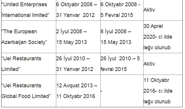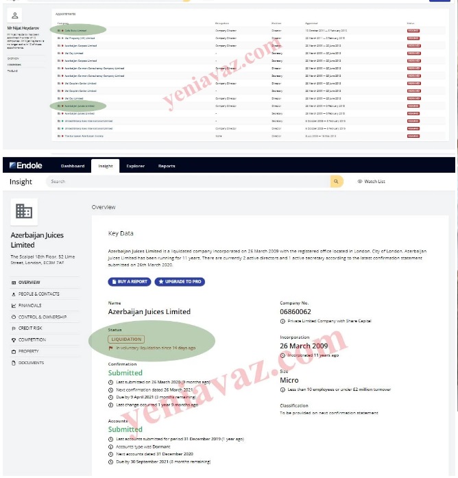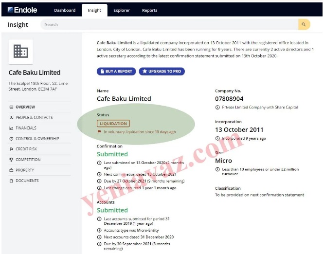 Yeniavaz.com xəbər verir ki, Londonda “Lime Street 52” ünvanında yerləşən şirkətlər 14 gün əvvəl ləğv olunduğunu elan edib və hazırda ləğvetmə prosesi davam edir.