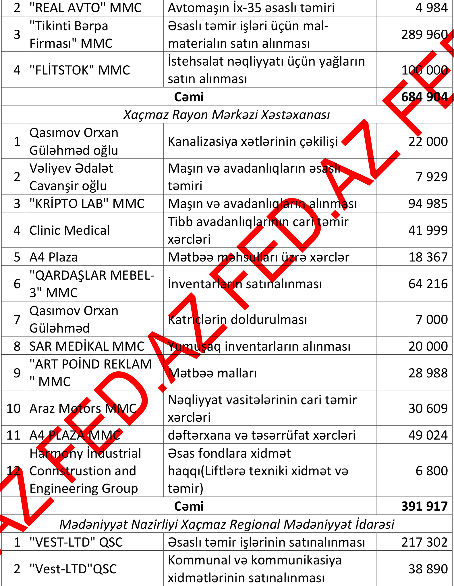 diaaz.space 2020-cu ildə Xaçmaz Rayonunda keçirilən tenderləri təqdim edir.