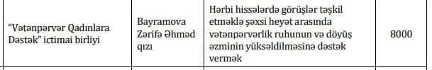 " Vətənpərvər Qadınlara Dəstək" ictimai birliyi.