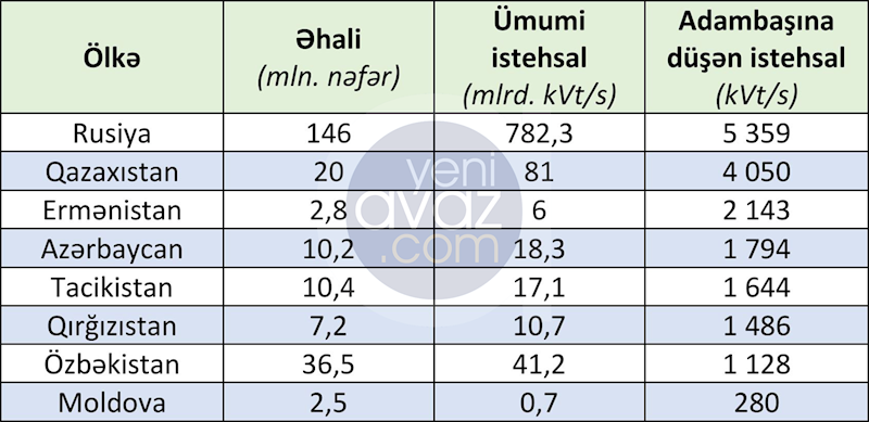 MDB ölkələrində elektrik enerjisi istehsalı belə olub: