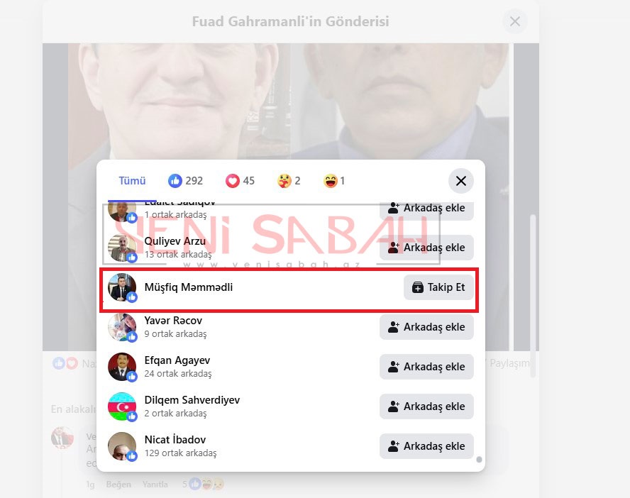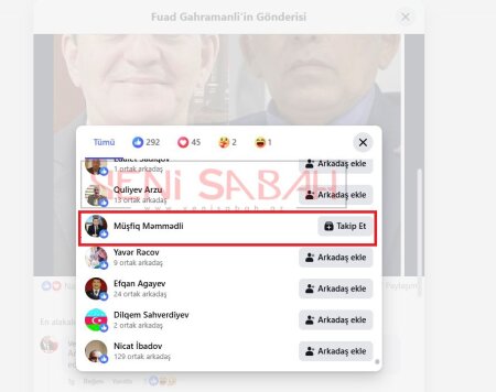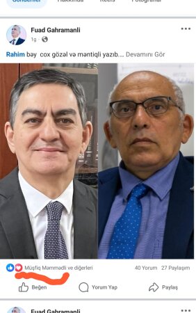 YAP-ın deputatı Müşfiq Məmmədlinin Əli Kərimli haqda məqaləni bəyənməsi haqda xəbərlər yayılıb. Bu barədə yenisabah.az saytı AXCP sədrinin müavini Fuad Qəhrəmanlının “Facebook” hesabında jurnalist Rahim Hacıyevin məqaləsindən fotolar dərc edib. Bildirilib ki, “Əli Kərimli son bir ildə dünya mətbuatında zəfər yürüşündədir” adlı yazıda partiya sədri haqda çoxsaylı təriflərə yer verilib. Yeni Azərbaycan Partiyasının üzvü, YAP xətti ilə 55 saylı Siyəzən – Quba – Xızı seçki dairəsindən deputat seçilmiş Müşfiq Məmmədli isə bu paylaşımı bəyənib.