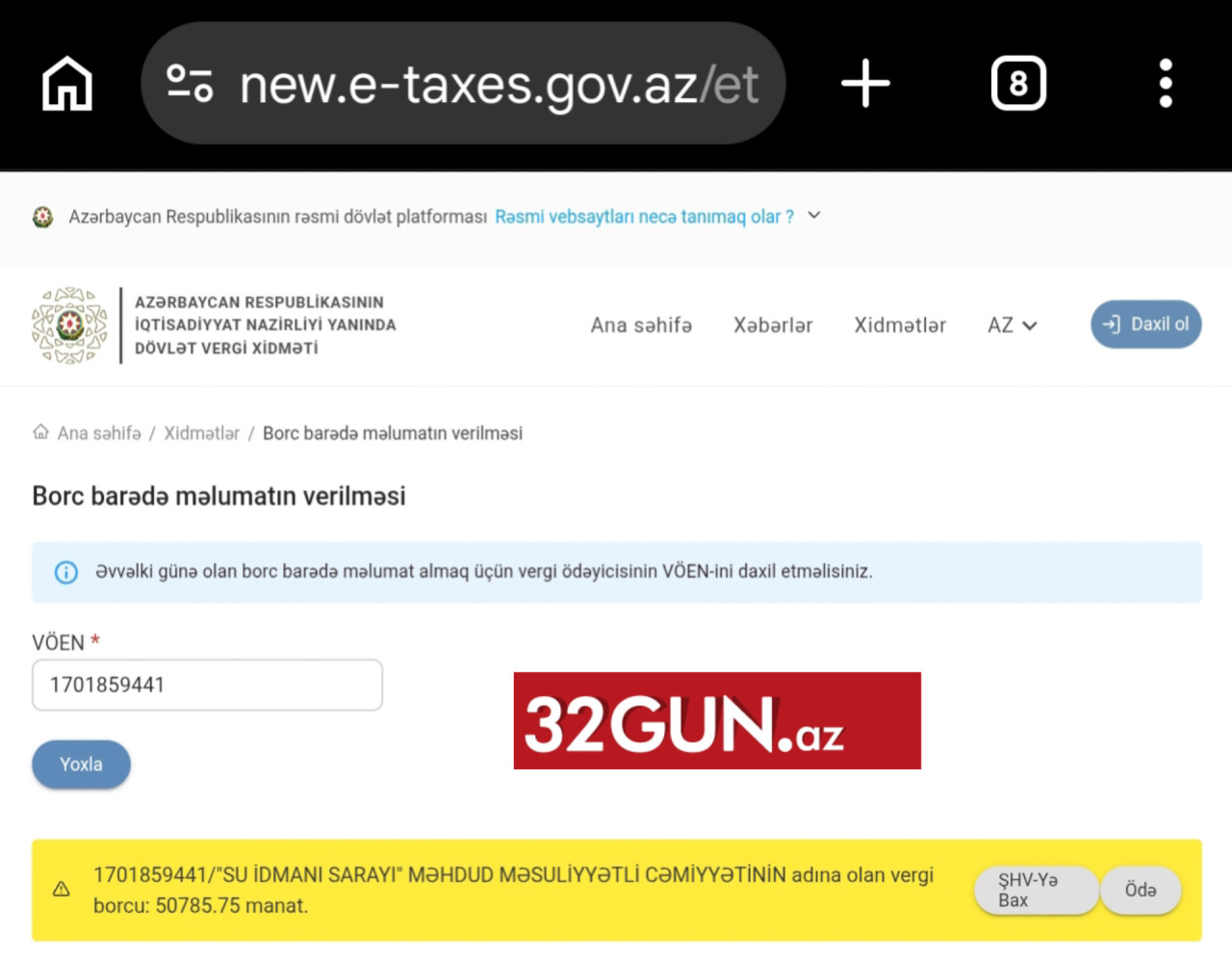 "Su İdmanı Sarayı" Məhdud Məsuliyyətli Cəmiyyətinin dövlət büdcəsinə olan böyük miqdarda vergi borcu üzə çıxıb.