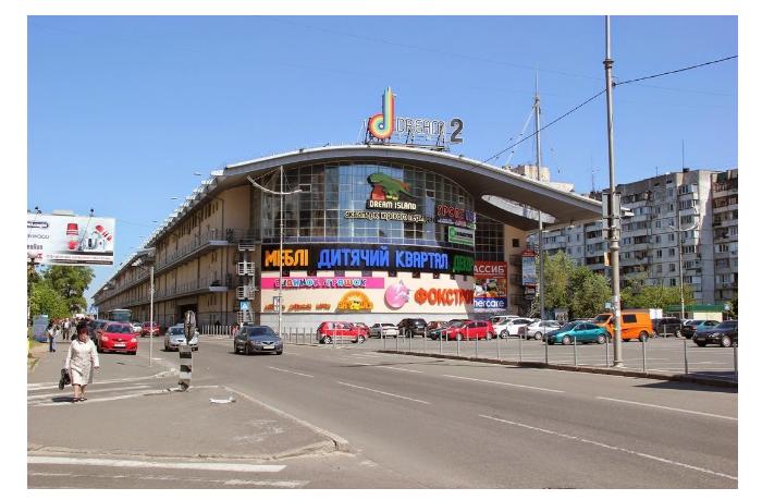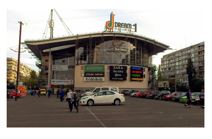 Kiyev şəhəri, "Obolonskyi" keçəsi 1B ünvanında yerləşən hündürmərtəbəli binalar, "Dream Town" ticarət mərkəzi.