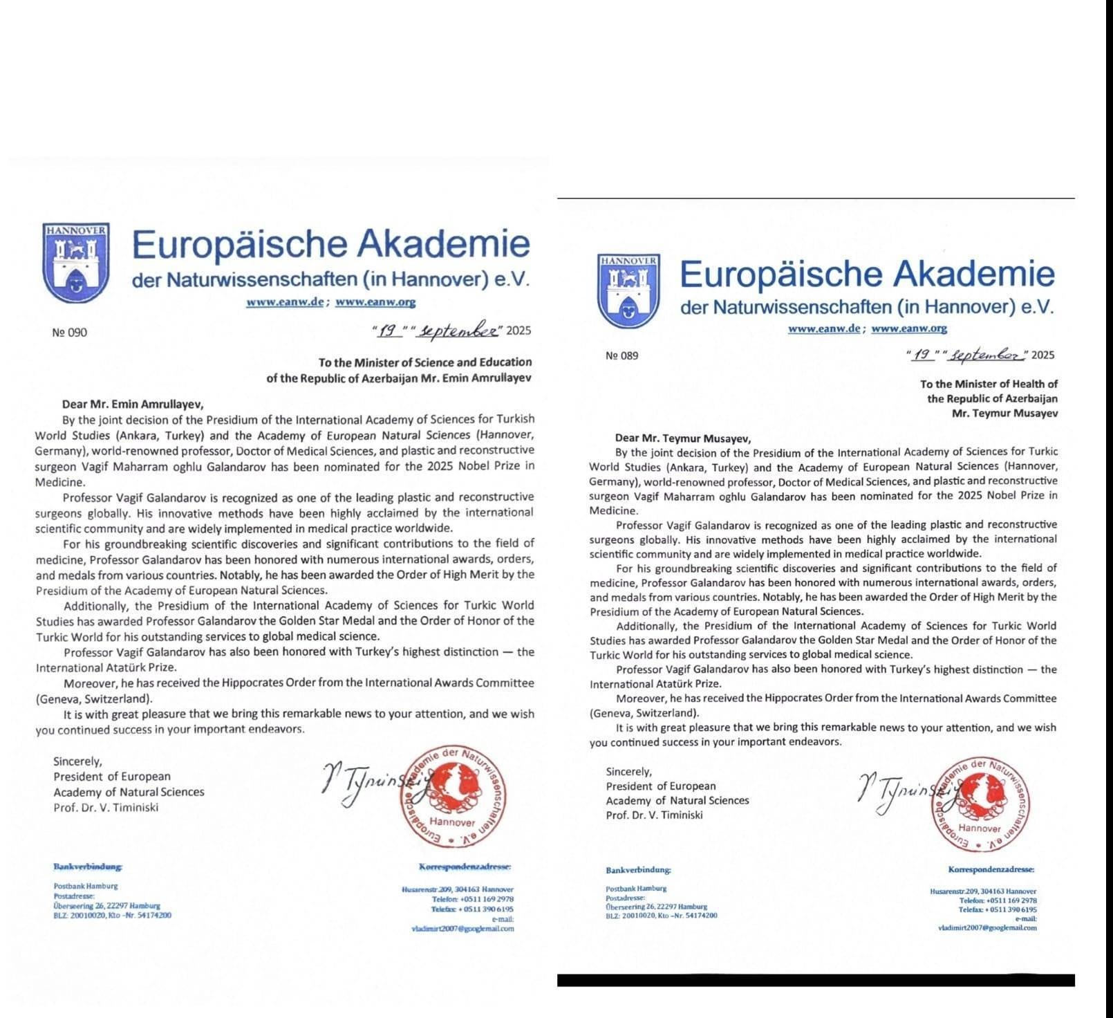 2025-ci ilin oktyabrın 23-də Azərbaycan Tibb Universitetinin professoru Vagif Qələndərov “Avropa Təbiət Elmləri Akademiyası”-nın ali ordeninə layiq görülüb...