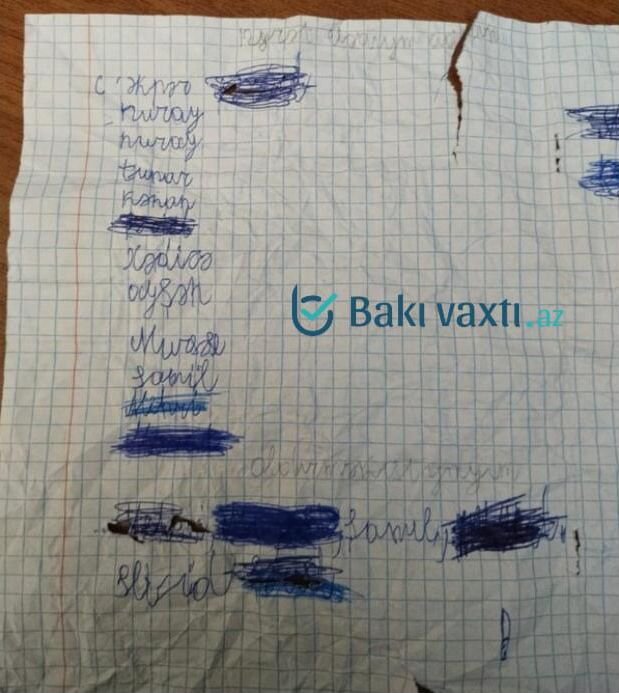 Lent.az xəbər verir ki, "Bakıvaxtı.az" həmin uşağın təhdid etdiyi şagirdlərin adlı siyahısını əldə edib.