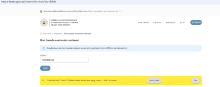 32gun.az-ın əldə etdiyi məlumata görə, sözügedən firmanın dövlət büdcəsinə 1458.15 AZN məbləğində vergi borcu mövcuddur.