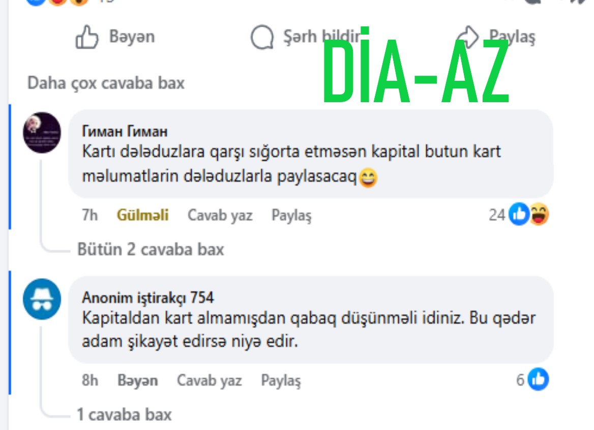 "Deməli, kartı dələduzlara qarşı sığorta etməsək, "Kapital Bank" bütün kart məlumatlarını dələduzlarla paylasacaq, eləmi?"