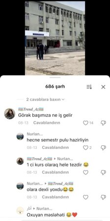 Durumu daha da kəskinləşdirən məsələ isə sosial şəbəkələrdə yayılan videolar (cavid1999 TikTok hesabı ilə paylaşıblar) və şərhlərdə özünü göstərir. Bəzi tələbələr açıq şəkildə iddia edirlər ki, imtahanlarda 200–300 manat pul tələb olunur. Şərhlərdə qeyd olunur ki, bu ödənişlər yalnız qiymət üçün tələb olunur və gizli şəkildə təşkil edilir. Tələbələrin rəyinə görə, pul yığımı həm fənn müəllimləri, həm də bəzi hallarda rəhbərliyin müəyyən dairəsi vasitəsilə həyata keçirilir. Bu hallar təhsil prosesinə, tələbələr arasında ədalət prinsipinə və kollecin nüfuzuna ciddi zərbə vurur.