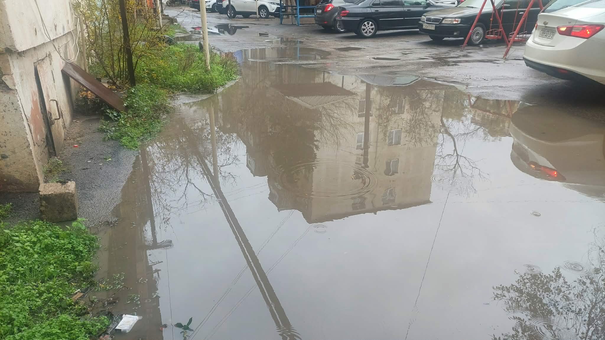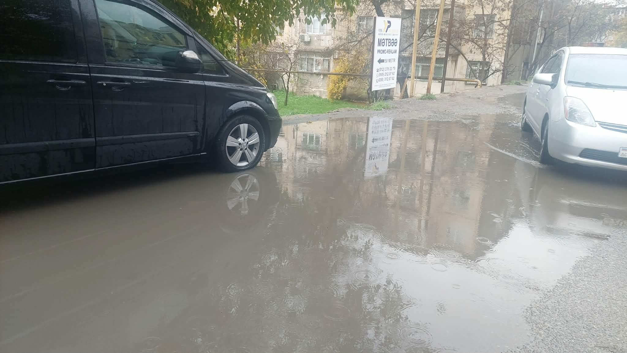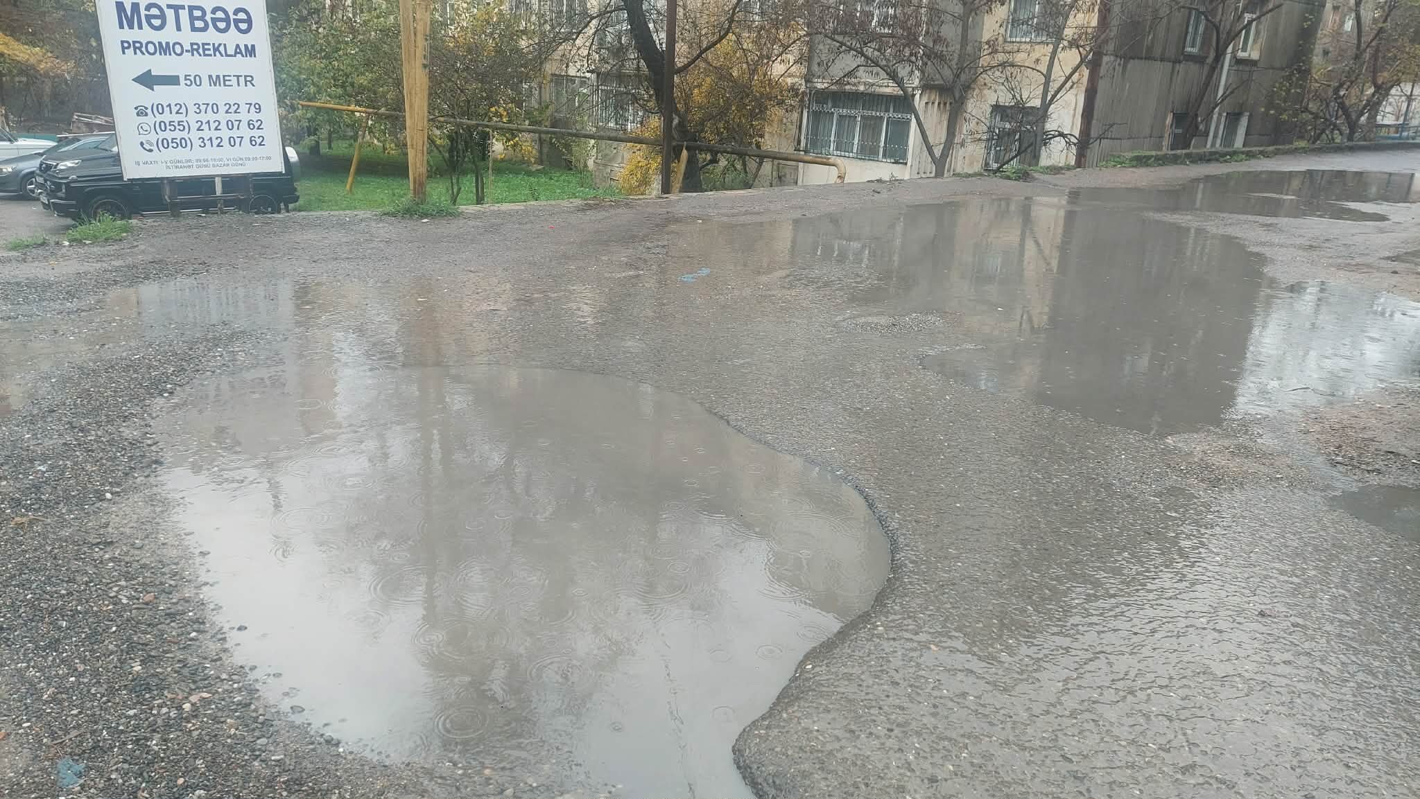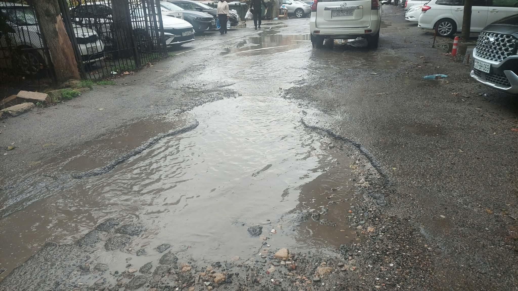 Xüsusilə Nizami rayonu, Rüstəm Rüstəmov küçəsində vəziyyət dözülməz həddə çatıb. Küçədə yerləşən yaşayış binalarının həyətləri tamamilə keçilməz hala düşüb. Vaxtında təmir olunmayan, çuxura çevrilmiş yollar yağışla birlikdə böyük gölməçəyə dönüb. Sakinlər evdən çıxmaq üçün suyun içindən keçməyə məcbur olublar.