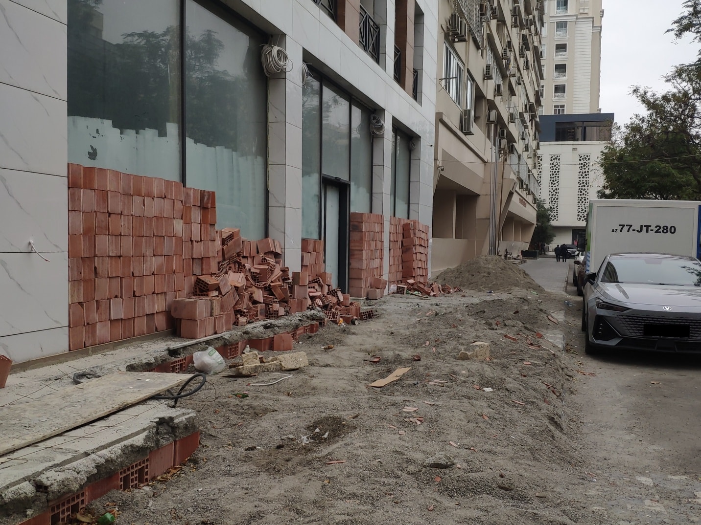 XALQ xəbər verir ki, Azadlıq prospekti ilə Nəsib bəy Yusifbəyli küçəsinin kəsişməsində yerləşən 5 mərtəbəli bu bina layihəyə görə qarajdır. Tikintisi hələ tamamlanmayıb, amma obyektin bir tərəfindəki səki parkinqə çevrilib, o biri tərəfindəki səkidə isə terras tikməyə cəhd olunub.
