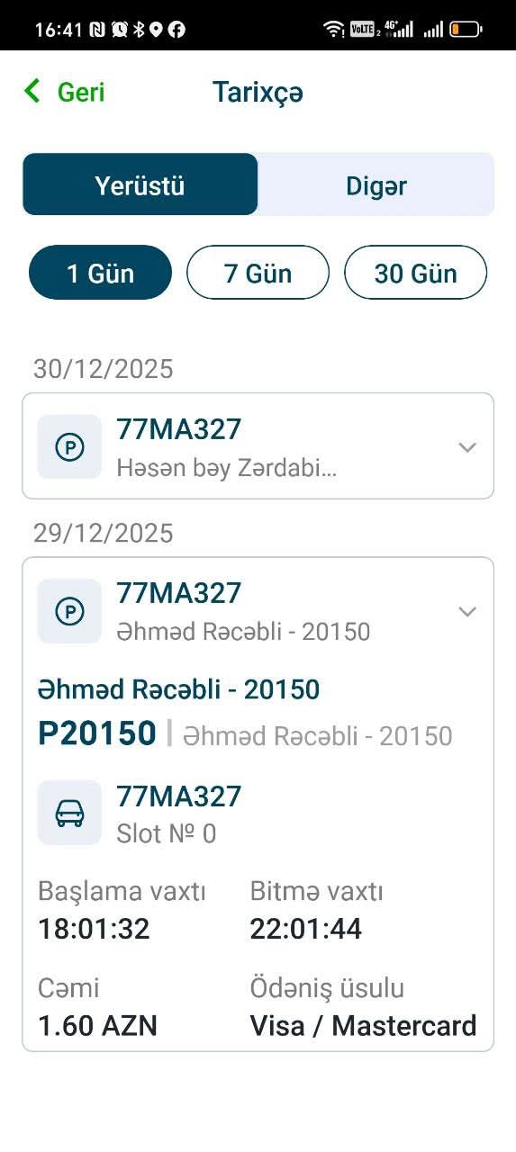 Qeyd edim ki, həmin vaxt internet problemi olduğuna görə parklanmanı dərhal tətbiq üzərindən aktivləşdirmək mümkün olmayıb. İnternetə çıxış əldə etdikdən sonra ofisə yaxınlaşıb tətbiqi aktivləşdirmişəm. Təxminən 15 dəqiqəlik gecikmə olub.