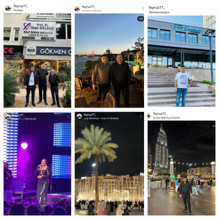 Sosial şəbəkələrdə aparılan araşdırmalar zamanı məlum olub ki, nazirlik əməkdaşı Feyruz Tağıyev geniş coğrafiyanı əhatə edən lüks səyahətləri və dünya turu ilə diqqət mərkəzindədir. O, Birləşmiş Ərəb Əmirliklərinə səfəri zamanı Dubay şəhərinin simvolları sayılan Burj Khalifa və Dubai Mall ətrafında görüntülənmiş, həmçinin Rusiyanın Jeleznovodsk şəhərindəki tanınmış sanatoriyalarda istirahət etmişdir. Türkiyəyə etdiyi çoxsaylı səfərlər çərçivəsində İstanbulun Boğaz mənzərəli elit məkanlarında və Antalyada vaxt keçirən Feyruz Tağıyev, hətta məşhur müğənni Sibel Canın Türkiyədə baş tutan özəl konsertində də iştirak edib. Nazirlik rəsmisinin müxtəlif ölkələrdən paylaşdığı bu rəngli görüntülər diqqətimizdən yayınmayıb.
