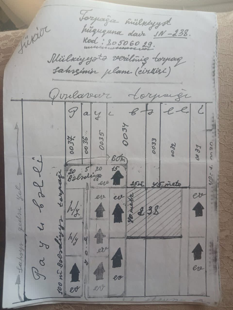 Masallının Bala Kolatan kəndindən Heybətov Əmirşah Vəliş oğlu redaksiyamıza bildirir ki, Heybətov Vəliş Murad oğlu və Rəhmətova Tutu Nəhmət qızına Masallı Rayon Aqrar İslahat Komissiyasının 1998-ci il 24 iyul tarixli 34 nömrəli qərarı ilə kənd təsərrüfatı məhsulları istehsalı üçün 0.28 ha torpaq sahəsi verilib.