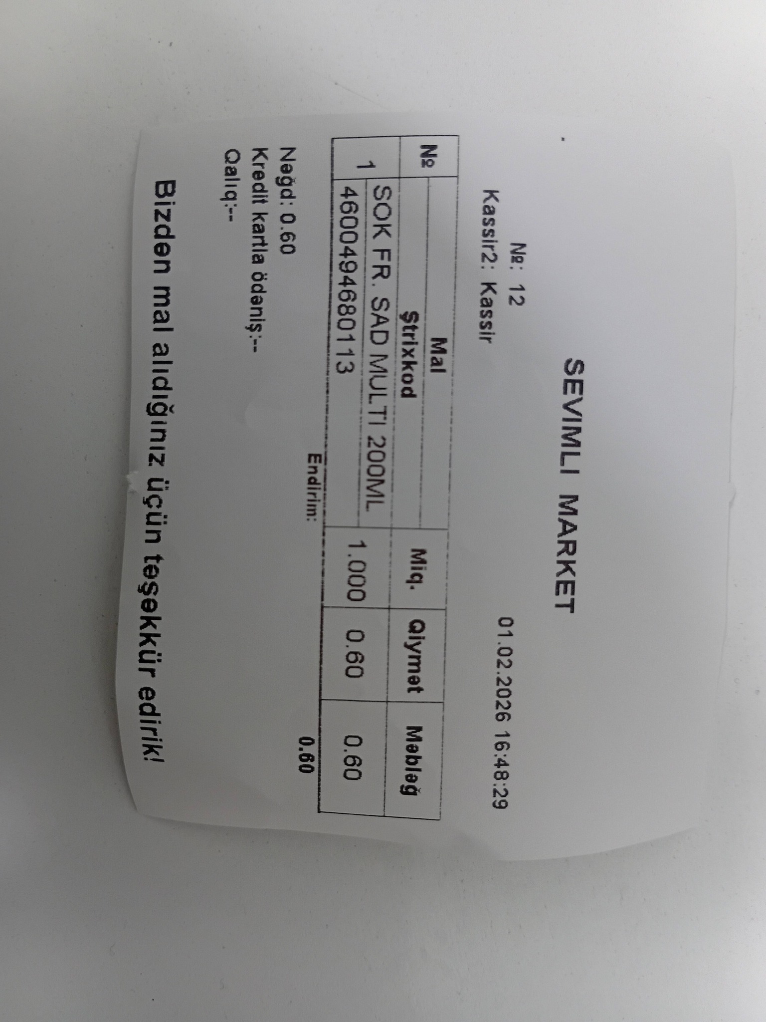 Narazıl vətəndaş yazır: "Gəncənin Gülüstan qəsəbəsində "Sevimli market" adlı marketdə malların qiymətləri düzgün qoyulmamağı bir yana, çek istəyəndə də bu kağız parçasını verdilər.