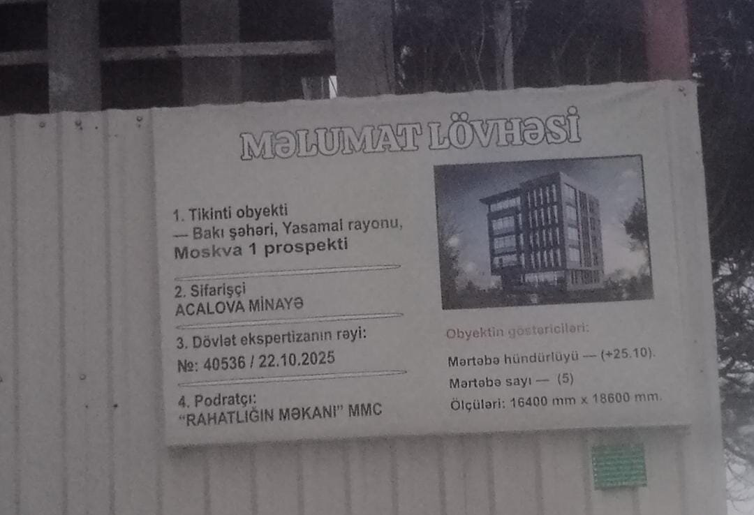 Qeyd edək ki, “Rahatlığın Məkanı” MMC-nin direktoru Acalov İsmayıl Nəbi oğludur. Moskva 1 prospektində inşa edilən obyektin sifarişçisi Minayə Acalova da MMC rəhbərinin qohumudur.