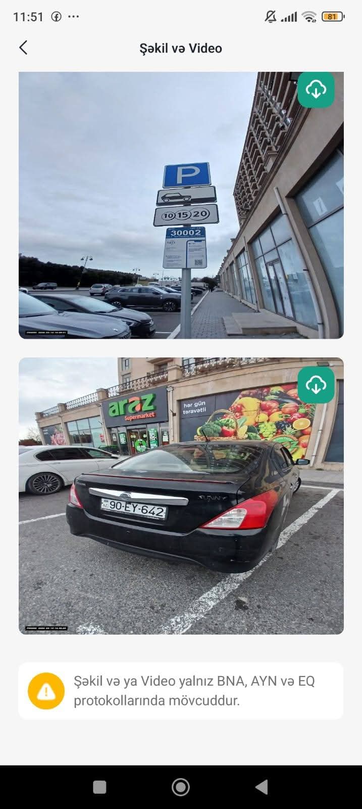 O daha sonra bildirir: "Bura 8 noyabr prospektində, Gənclər parkına paralel olan ARAZ marketin qarşısıdır. Hər kəsə məlumdur ki, bu yaşayış binası tikiləndə elə lahiyələşdirilib ki, binanın qarşısında dayanan maşınların prospektə heç bir aidiyyatı olmasın. Yəni prospektdən kənar zolaq saxlanılıb. Həm də market 7/24 işlək olduğu üçün, az müddətə burada maşınlar dayanır (5- 10 dəqiqə), bazarlıq edilir. Marketin köhnə rəhbərliyindən bir nəfər mənimlə söhbətində deyirdi ki, maşınlar dayansın deyə, AYNA-ya hər ay müəyyən qədər bac-xərac verilir. Səbəb: onlar soyğunçuluq edib, müştəriləri didərgin salmasınlar. Görünür marketin rəhbərliyi AYNA rəhbərliyinin dilənçiliyindən, onların xəracı artırmaq üçün etdikləri iyrənc və korrupsiner cəhddən beziblər, anlaşma pozulub. Görəsən deyilənlər doğrudurmu?