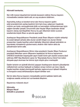 Təbrikləriniz isə həmişəki kimi zəngin və səxavətlidir. Oxuduqca adamın ürəyi dolur. Kart isə boş qalır, amma görünür balans məsələsində də bir harmoniya qorunur.