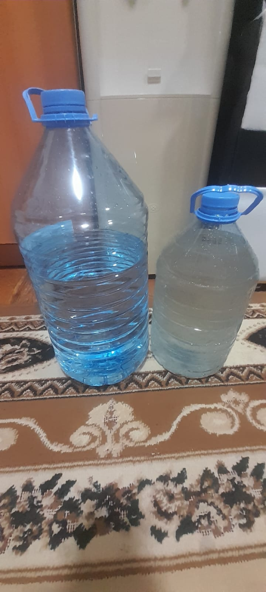 Fotolarda iki fərqli su nümunəsi əks olunub. Onlardan biri marketdən alınan təmizlənmiş sudur, digəri isə İri Şəhərlərin Birləşmiş Su Təchizatı Xidməti tərəfindən şəbəkə xətti ilə evlərə verilən sudur. Görüntülər arasındakı fərq açıq şəkildə hiss olunur və verilən suyun yararsız, təmizlənməmiş. olduğu açıq görünür.