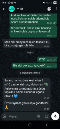"Şikayətim m10dandır". "DİA-AZ" xəbər verir ki, bu barədə "Müştəriyəm Şikayətim Var" sosial qrupundakı paylaşımında Hafiz İsmayılov adlı istifadəçi gileylənir.